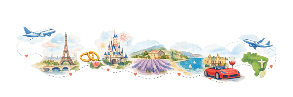Após celebrarmos nossa união em Paris, seguiremos viagem pela Provence, com seus campos de lavanda, vilarejos charmosos e paisagens tranquilas, e pela Riviera Francesa, conhecida pelo mar azul, pelas cidades elegantes e pelo clima mediterrâneo, passando por Mônaco.